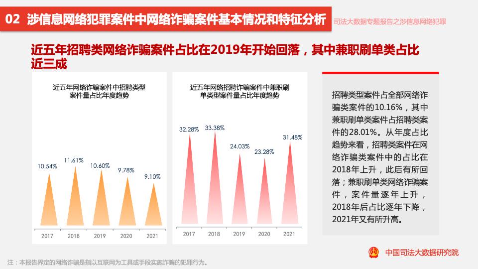 報告對近五年全國各級法院一審新收、已結涉信息網(wǎng)絡(luò )犯罪案件發(fā)展趨勢進(jìn)行深入分析,為廣大群眾識別防范風(fēng)險、保護自身權益,為相關(guān)部門(mén)加強犯罪治理提供參考。